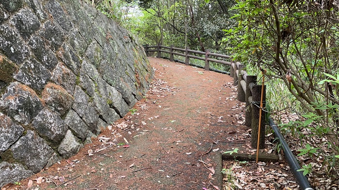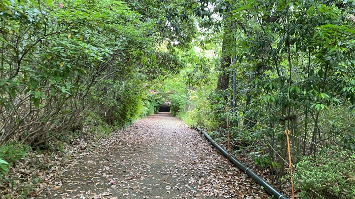 弱い雨がしとしとと降る中、まずはコンクリートで舗装された遊歩道を通ります。非常になだらかな勾配。