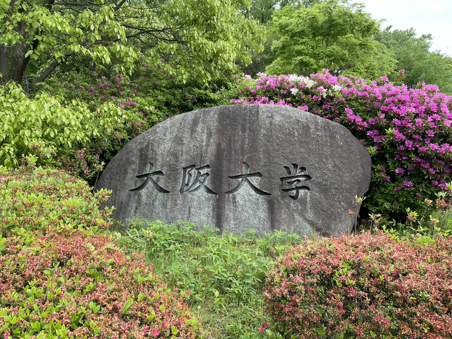 石橋阪大前駅からは徒歩10分くらい。しばらく歩くと大阪大学が見えてきます。